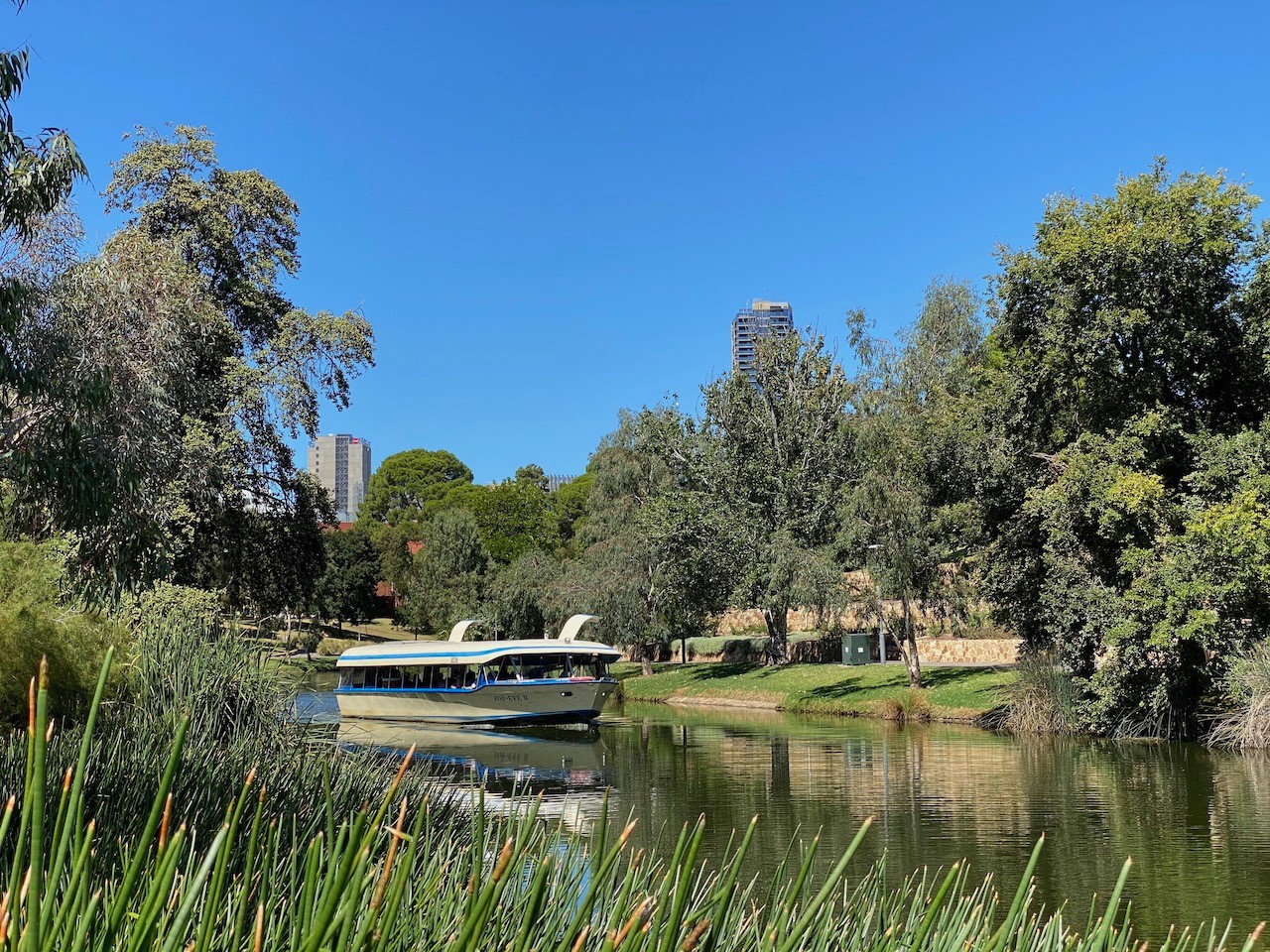 On our second day, we hired E-Scooters and scooted to Adelaide Zoo. It was interesting to see all the unusual animals, including giant pandas, the usual various marsupials and Tasmanian Devils. We left the scooters at the zoo, and took a ride on a river boat back into the heart of the city.