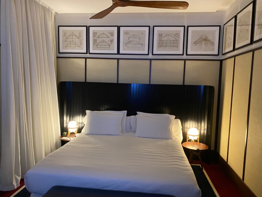 We booked our visit to Casa Battló for 16:00 so we would be on the roof for sunset and outside in time for the 18:00 light show. This was our favourite of the Gaudí attractions in Barcelona that we have visited so far. The house is amazing, favourite sections included the main staircase which was like being inside a sea shell, then the stunning stained glass picture windows over looking Passeig de Gràcia, and the internal atrium which changed hues of blue as you ascended. We really felt that this was Gaudí’s masterpiece and liked the new tour additions including the Gaudí Dome to start, staircase descent by Kengo Kuma, and the first 6 sided LED Gaudí Cube light show by Refik Anadol. The audio guide was brilliant, it started automatically as you entered each room, and signalled when to move on allowing visitors to pass through the building at their own speed. The gold entrance fee, which included a mini bottle of cava each was €45 for two of us with Spanish resident’s discount.