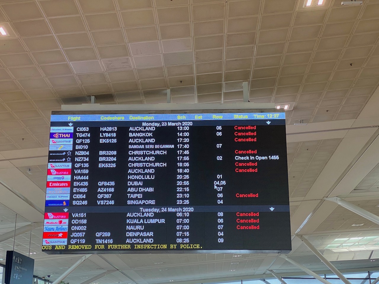 On Monday morning we realised that Emirates were pulling their flights and our route home was in jeopardy. Our connection on Thursday evening from Brisbane to Dubai had disappeared from our flight schedule, we made the decision to pack and head to the airport to see what could be done.