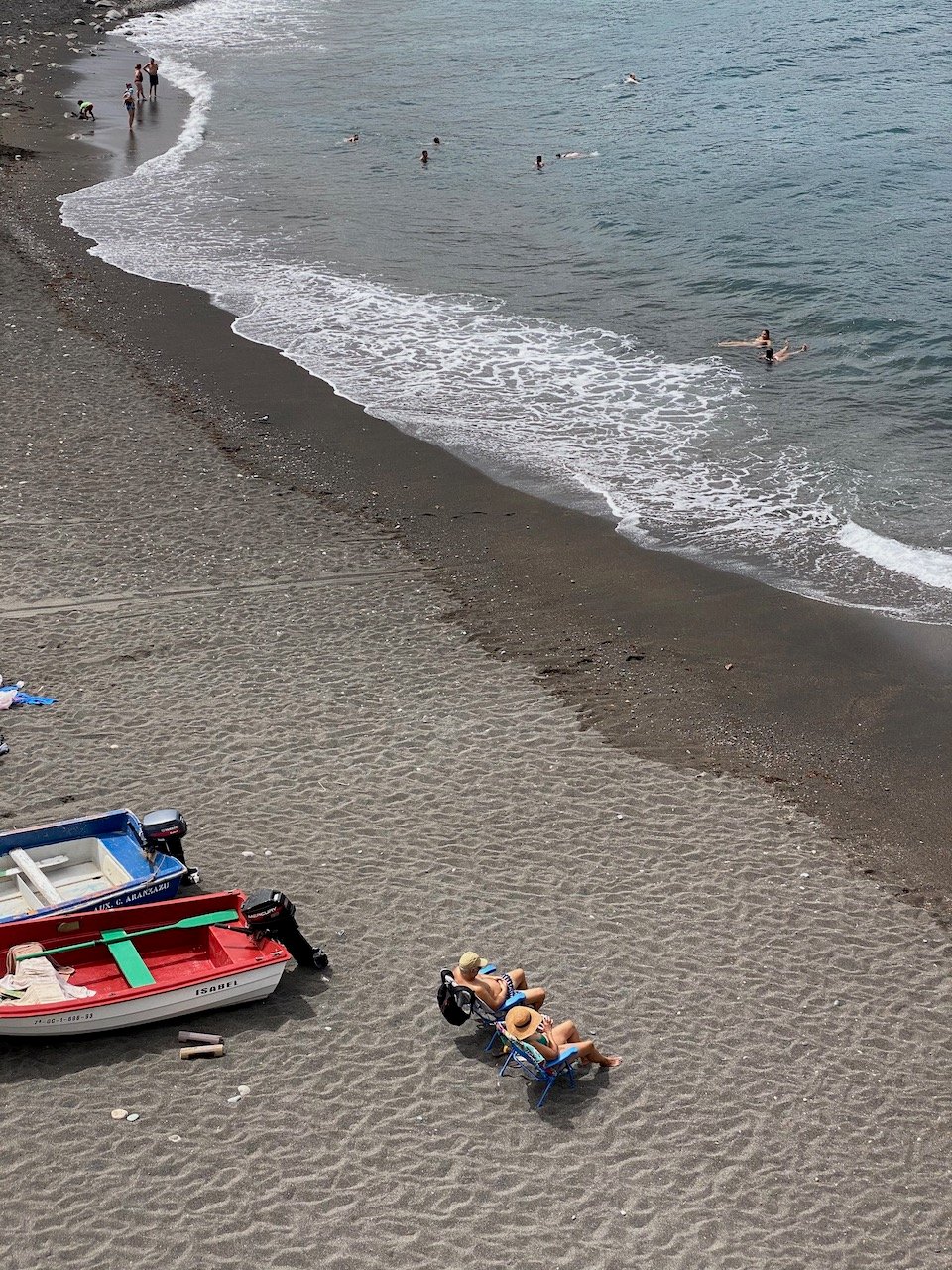 We enjoyed our stroll down through the seaside village of Ajuy. The seafood restaurants were setting up for a busy Sunday lunch. Locals were enjoying the picturesque black sand beach, with boats and sunbathers.