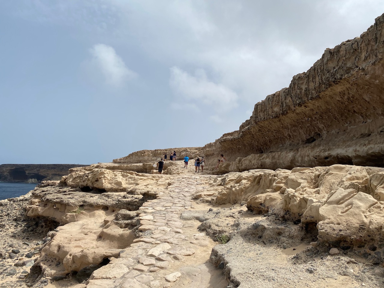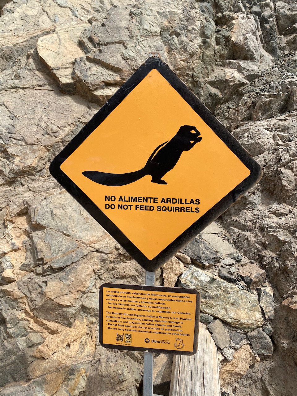At the start of Las Cuevas de Ajuy footpath, there is a warning not to feed the Barbary Ground Squirrels. Whilst visitors find them cute, they are considered to be vermin, causing damage to the natural flora & fauna of Fuerteventura. We walked this section in flip flops, however we recommend more sturdy footwear would be better due to the rocks and loose stones underfoot in places.