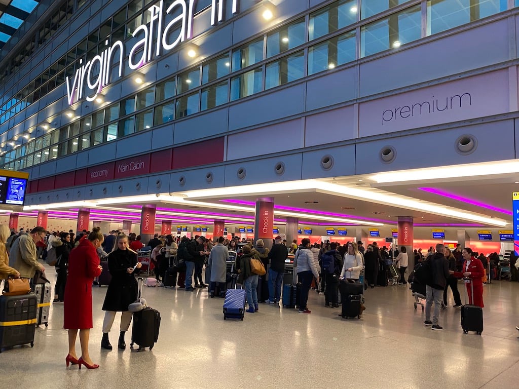 We were immediately asked if we were flying with Virgin or Delta, and when we told our guide, she took us to a desk where we were asked some pre security questions. This apparently is a Delta “thing,” and once we’d answered them satisfactorily, a small sticker was put on our passports and we were directed to check-in. Unlike British Airways, Virgin has a dedicated check-in area for premium, and there was no queue at all – we dropped our cases in moments, and we were into the fast track line at security.