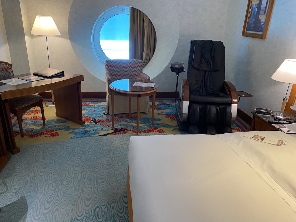 What I can tell you is that then room was spacious and comfortable, the bed was glorious and we had a massage chair in the room which was amazing!