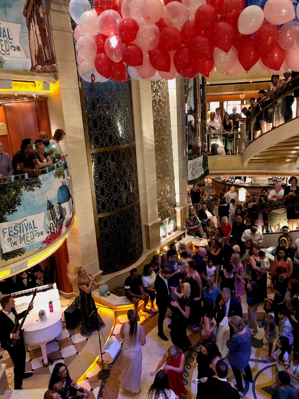 As we’d had a late lunch of pizza just before returning to the Emerald Princess, we went to the early performance of “Magic to Do” the premier show of our cruise. If I’m honest, the storyline was a bit confusing, however some of the magic effects were amazing. We also enjoyed the combination of the ship’s dancers, singers and musicians performing together. We went to the buffet restaurant for a snack later in the evening, there was a really good choice of dishes available and open until 11pm. It was a formal night, which included a balloon drop party in the Piazza.