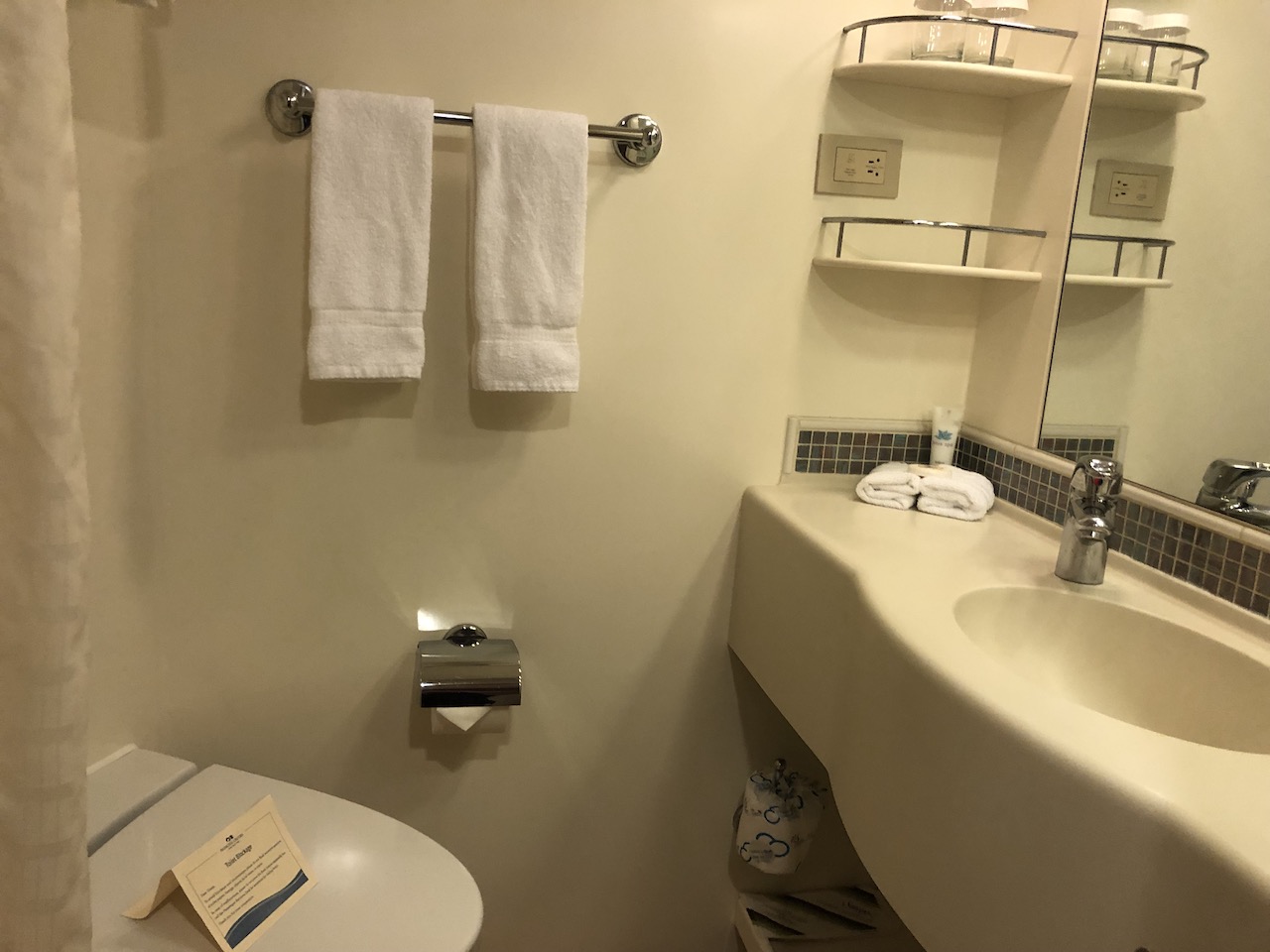 When we’ve cruised previously we’ve had an ocean view stateroom. However on this occasion we had an internal stateroom C204 which is forward on deck 10 Caribe. In the stateroom we had a big and extremely comfortable double bed, bedside tables, desk, huge TV, hairdryer, minibar, and plenty of handing and storage space. The bathroom includes shower, toilet, sink and toiletries. We had a lovely lady called Marilyn as our stateroom steward. She has the biggest smile, always wanted to know about our day and impressively knew everyone by name.
