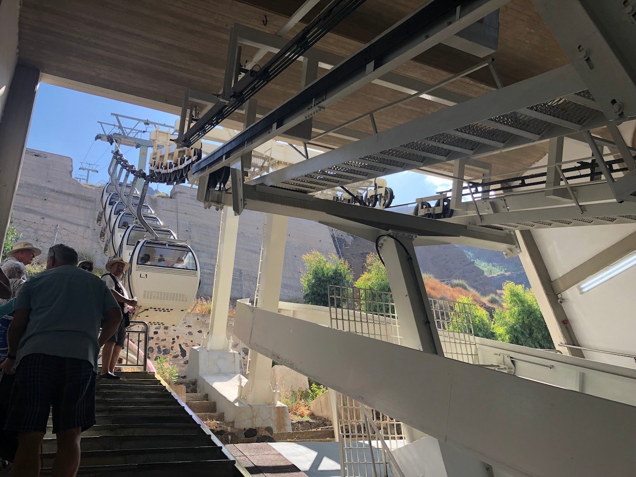 We didn’t leave the ship until 10:00 for our tender service as we made use of the wifi service to catch up on work first, whilst the majority of excursions left. We walked straight on to the cable car service costing €6 per person for a one way ride. It’s a steep, short climb, before you know it, it’s time to get off. Our plan was to do the Caldera hike from Fira to Oia which is 10.5km. However we didn’t want to get stuck trying to find a bus / taxi back on a Sunday afternoon from that end of Santorini, and risk missing the last tender service at 18:00. We decided to walk the route in reverse, by taking a taxi from Fira to Oia. We found the taxi rank in Fira, it’s behind the Hotel Santorini and arrived in Oia 20 minutes later, which cost €35.
