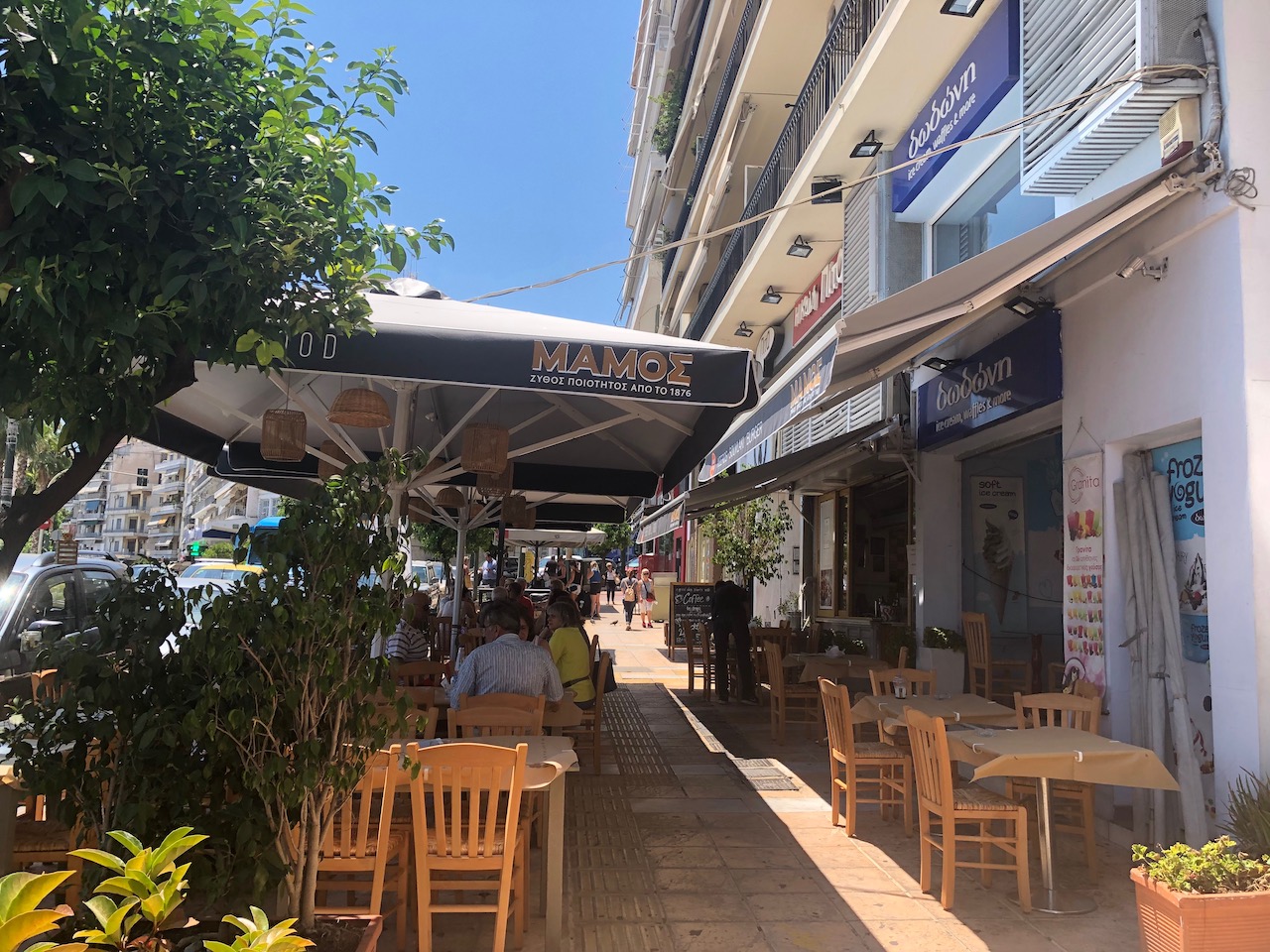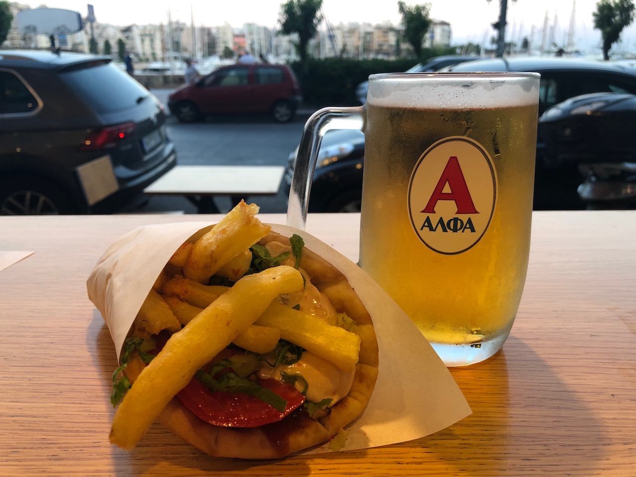On our evening walk we found ourselves drifting back in that direction, but this time had a light bite and beer at Route Souvlaki 24 in the same area.