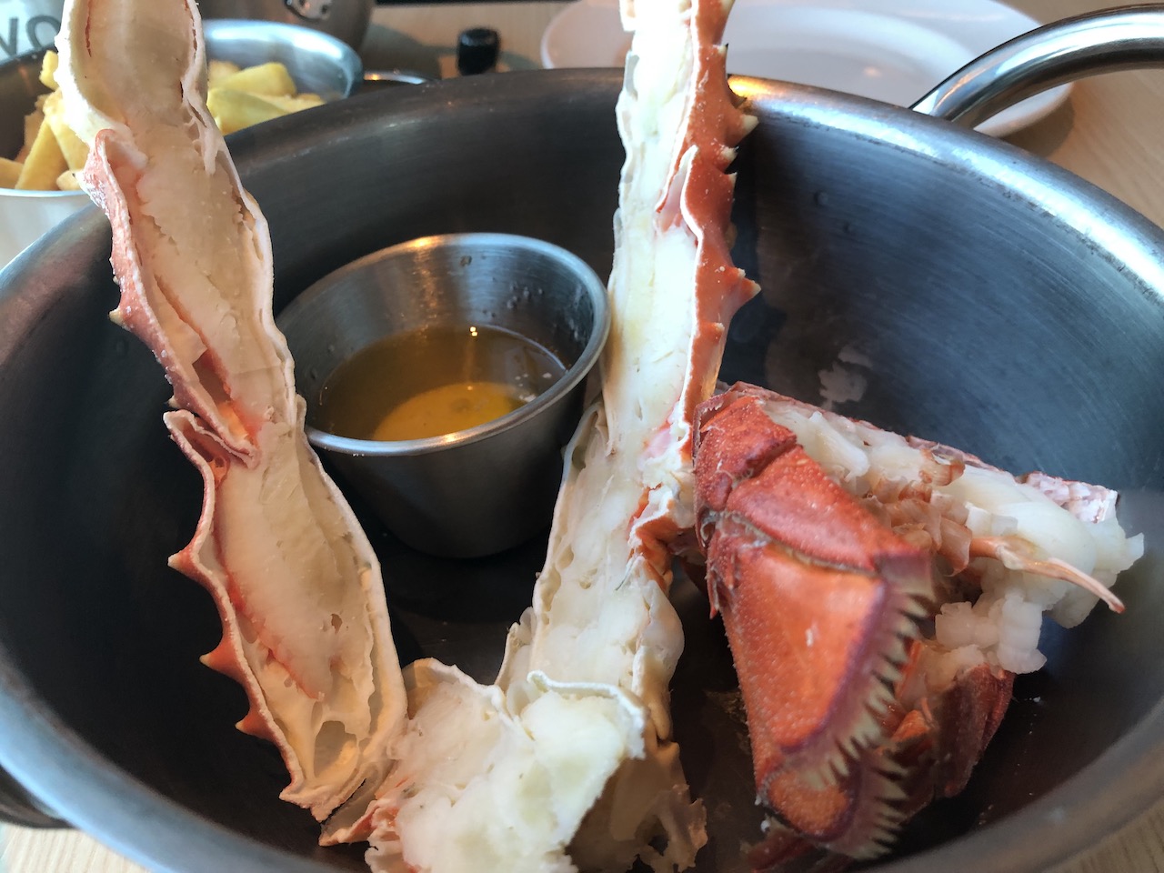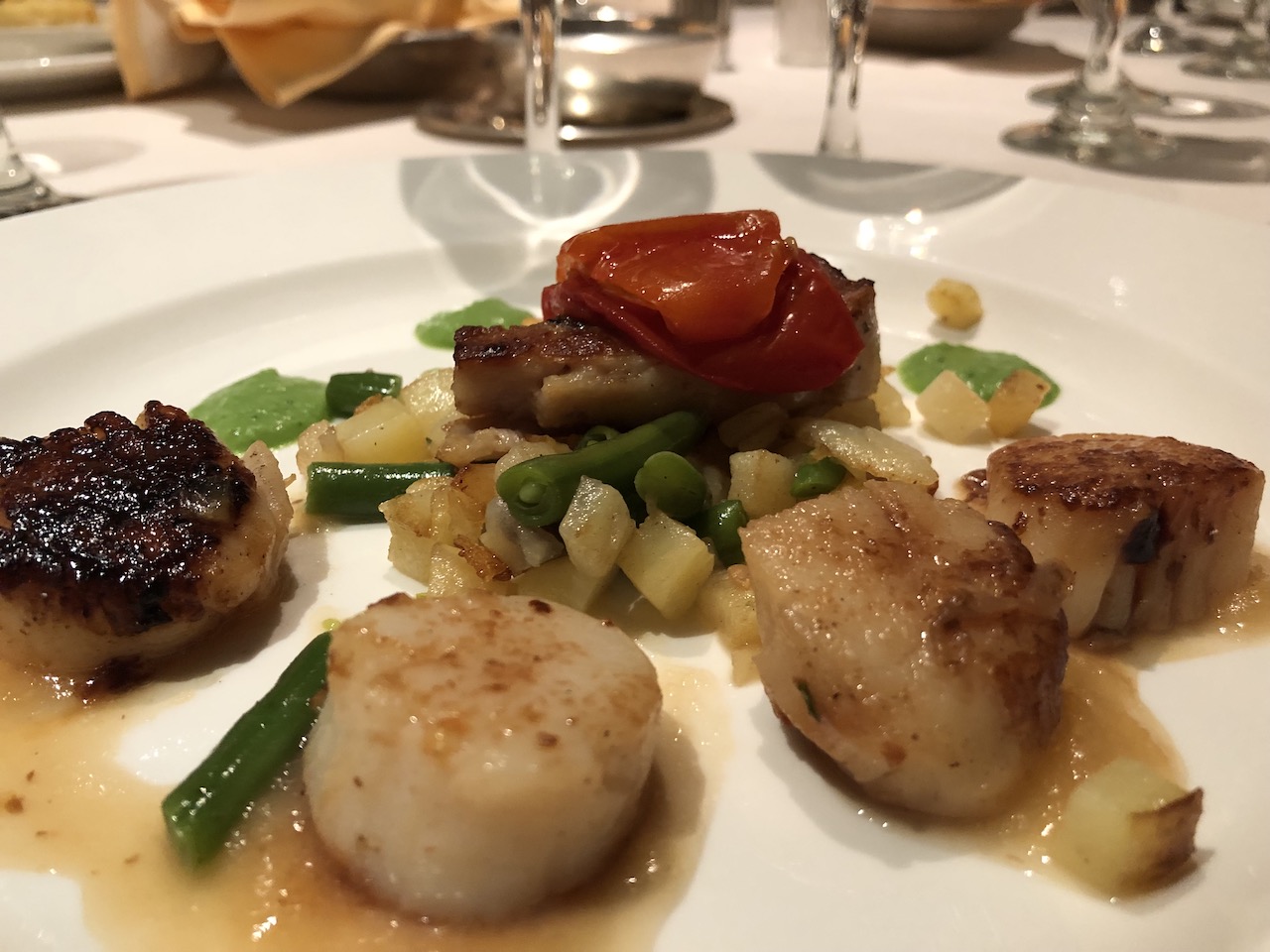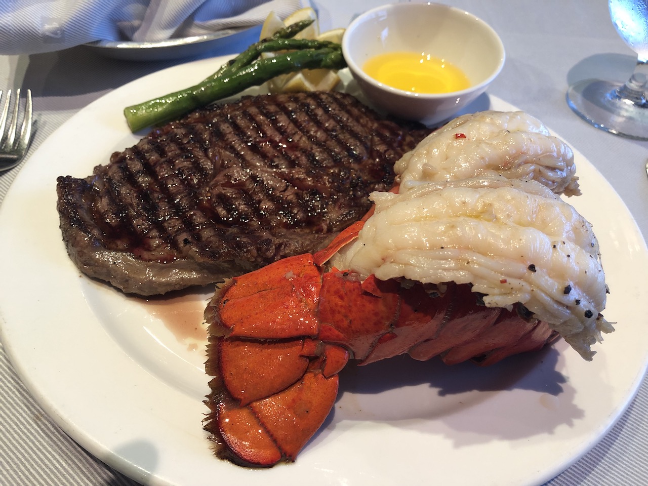 We had pre booked a table at the Crown Grill for our evening meal, there’s a cover charge of $12 each to dine at this restaurant. We were given a window table for 2 and the service from our waiter Alex was excellent. He was knowledgeable about the menu & wines to give advice on our selection and empowered to make a decision to allow Mike to have prime rib with lobster tail instead of the usual surf and turf steak. We started with lobster fishcake with asparagus which was superb. Followed by the recommendation of black and blue soup. For my main course I had the lamb chops served on mashed potatoes. It was an excellent meal and evening.