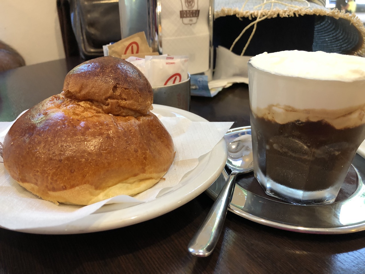 We weren’t sure what to do in Messina, as we were arriving at 13:00. That meant we had missed the astronomical clock performance at 12:00. The local food markets had also closed. We did get off the ship to stretch our legs and have a walk around. Messina was mainly closed and very quiet during the afternoon. On my list of things we’d wanted to do was to try a cannoli as well as a granita di caffè con panna. We were in luck the Pasticceria Irrera 1910 was open and provided the perfect opportunity to taste Sicily. With the frozen coffee, you tear pieces off your brioche and scoop the thick cream off the top, then drink the coffee to finish!