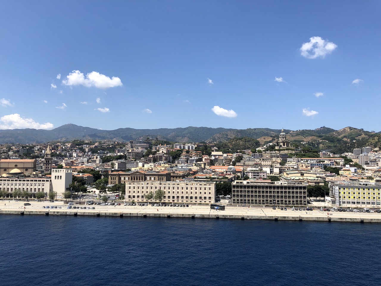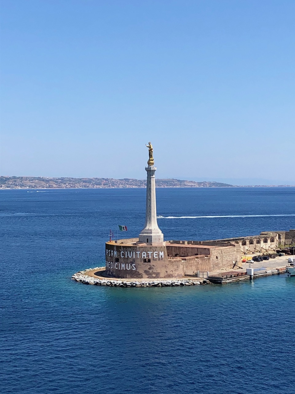 After a relaxed morning at sea, we enjoyed the sail into Messina in Sicily. There’s only a 3km stretch of water, known as the Messina straits, dividing the island from the mainland of Italy. You can’t help but notice the golden statue at the entrance to the port, this is La Madonna della Lettera. The wording that can be seen underneath the madonna is “Vos et ipsam civitatem benedicimus” which translates to “I bestow my benediction upon you and your city”.