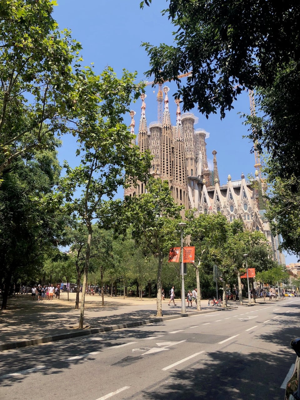 After a tapas lunch, we set off on our Gaudi walk to find the Casa Battló on Passeig de Gràcia. This was a new area of Barcelona for us, so we enjoyed walking through the Gothic area despite the humidity and 34 degree heat. We were amazed that we couldn’t see any sight of the Sagrada Familia as we walked towards it, we were literally in the Plaça de la Sagrada Família before the top was visible through the trees. Construction started in 1882, Gaudi took over in 1883, he died in 1926 when it was one quarter finished. The building license was granted in 2019! Hopefully the work will be completed in 2026 to mark the 100th anniversary of Gaudi’s death.