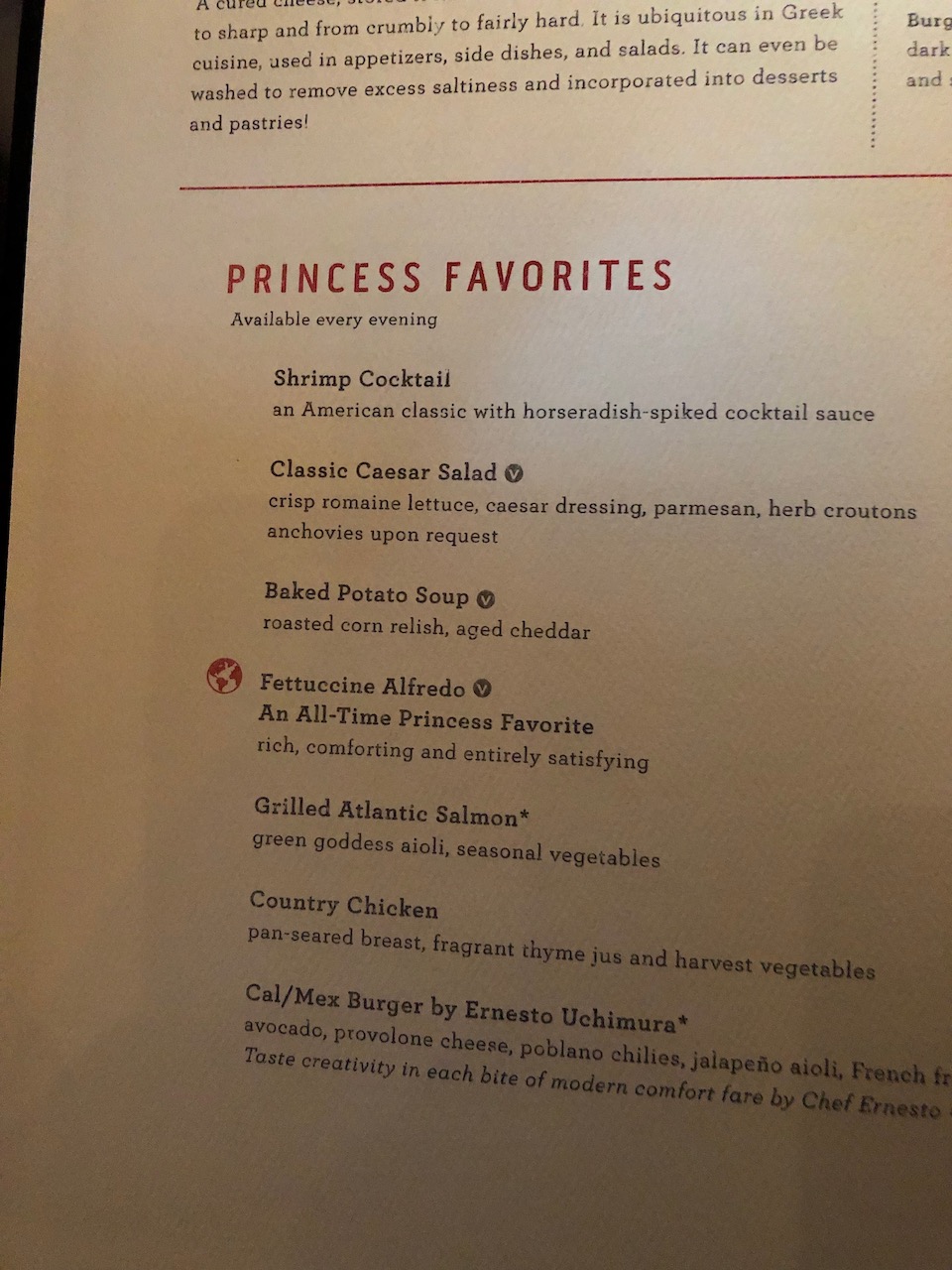 - Princess Favourites Menu