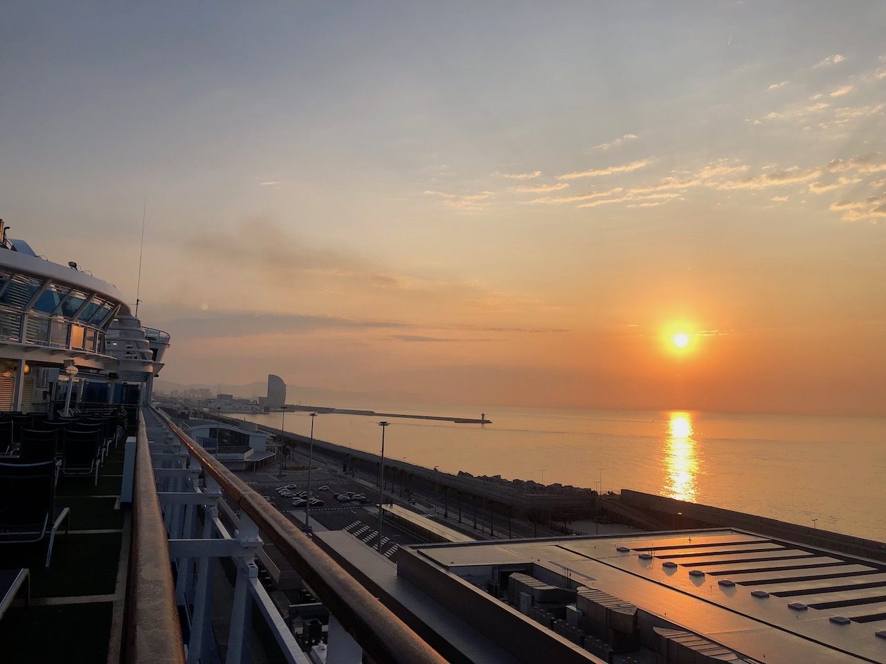 As we weren’t rushing off to catch a flight, we opted for the last disembarkation time at 08:50. We had an early breakfast and worked on deck until it was time to depart. The process was very slick, we literally arrived at the designated lounge for our group and were almost immediately directed to our gangway to exit the ship. The luggage reclaim area was clearly set out in coloured groups, and it was easy to find our cases. On exiting the building there was a queue for taxis and a steady stream of vehicles arriving. We were checked into our hotel by 10am. As we were too early to have access to our room, we had a walk around the marina area, where we could see 4 ships docked in the cruise terminal nearby.