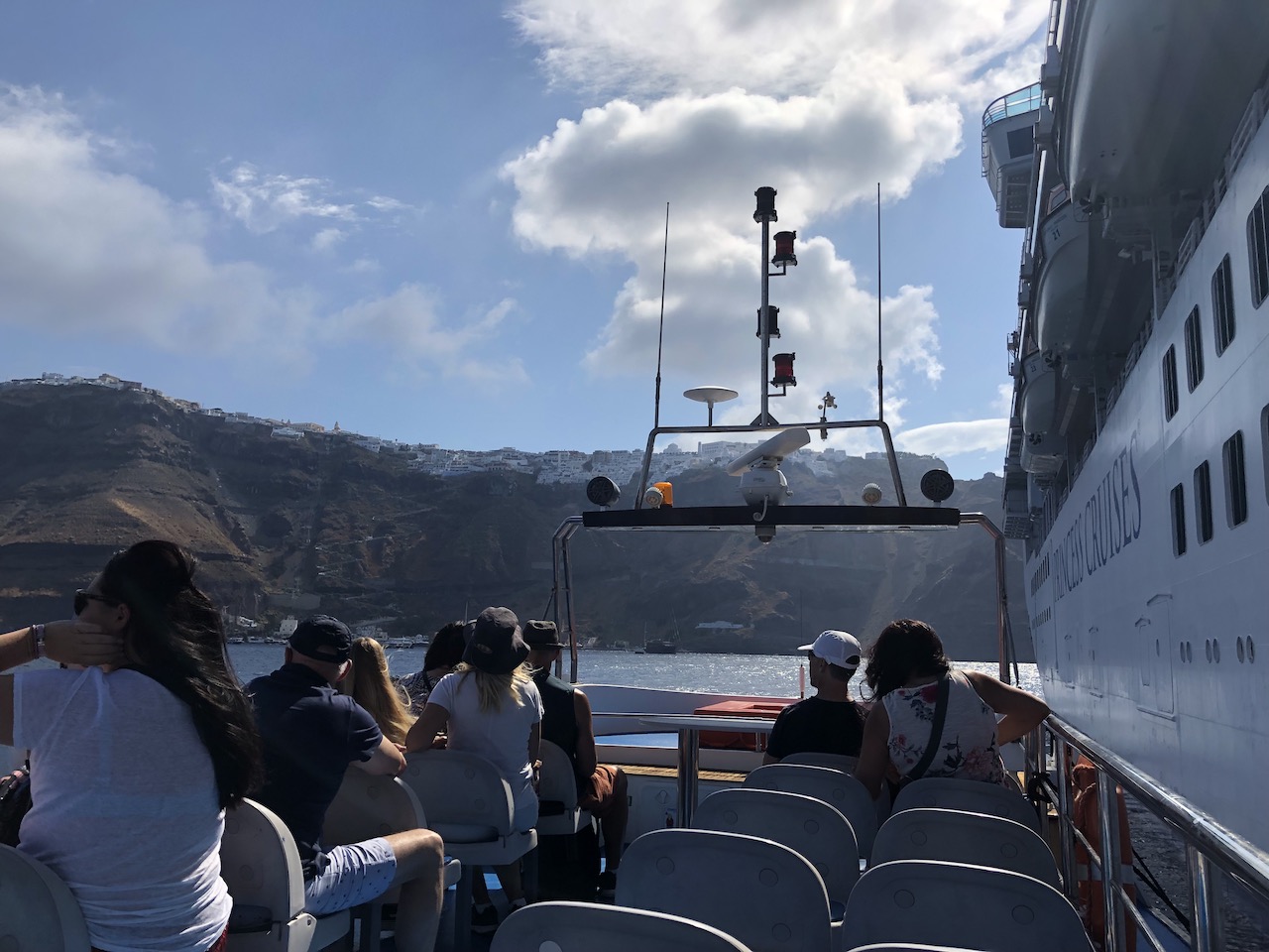 - Tender service from ship to shore in Santorini