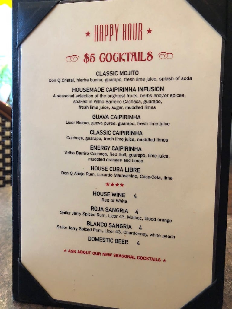 It was the coconut crab fritters that attracted me to the Cuba Libre happy hour on I-Drive. This Cuban restaurant is situated at Pointe Orlando and quickly attracted some groups upon opening for happy hour. We sat by the bar and enjoyed a house cuba libre and guava caipirinha cocktail for $5 each. A basket of bread with an interesting butter arrived, shortly followed by our dishes of coconut crab fritters and pineapple guacamole cubano at $6 each. Service was excellent and the food fresh and extremely tasty. Happy hour is served 5-7pm everyday.