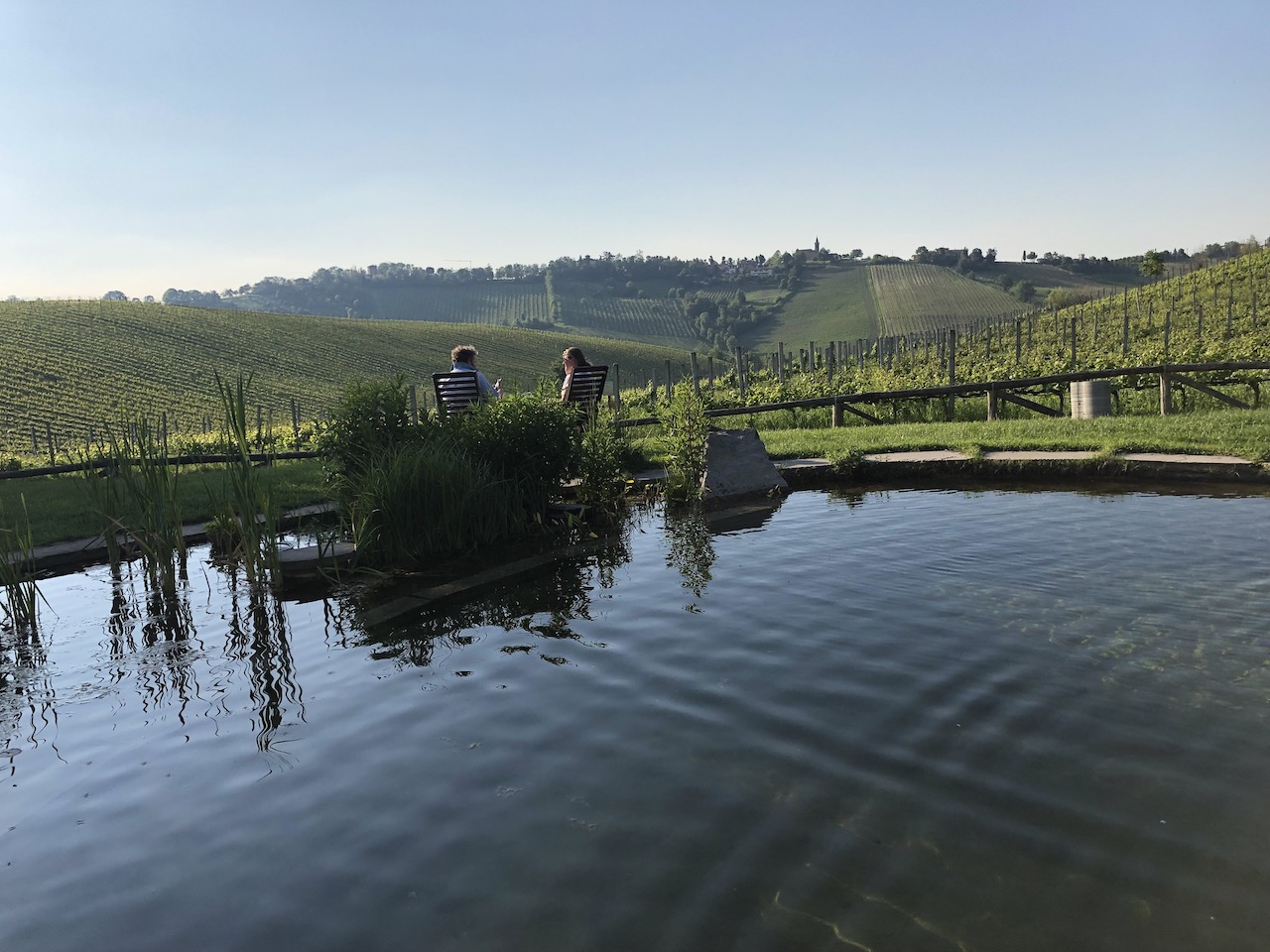 Our Ryanair flight was uneventful and before long we were touching down in Bologna. Michele was waiting for us outside arrivals and it was a fairly short transfer to our rural farmhouse accommodation. We were staying at the Corte d’Aibo which is a winery with accommodation and restaurant. Our room was in the renovated accommodation block, we had a comfortable double bed, with jacuzzi bath and a terrace with views over the lake and valley. We had a couple of hours to relax, before the group was due to meet up for dinner and wine tasting that evening.