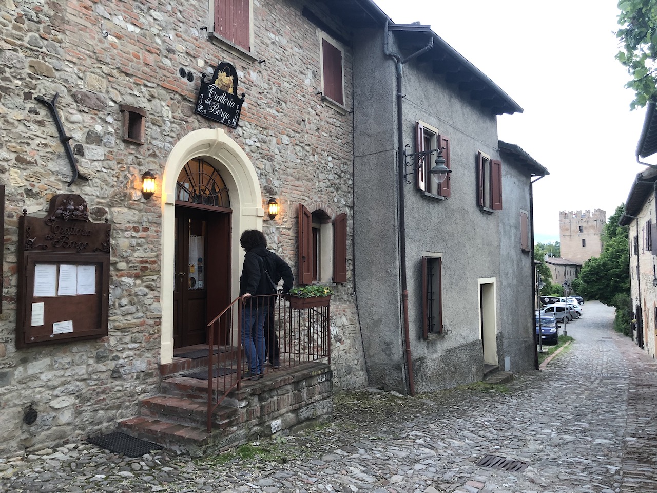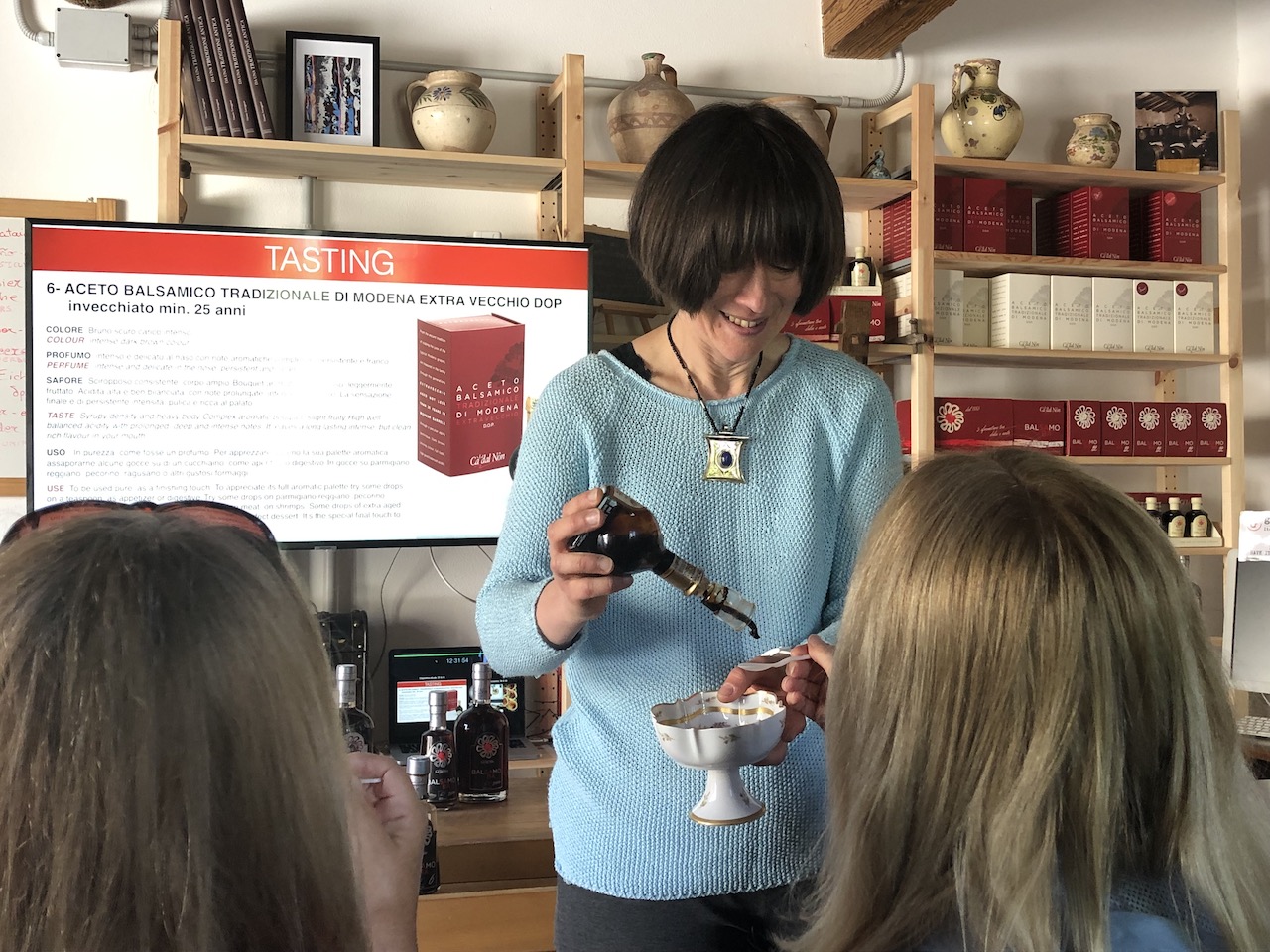 We were blown away with our visit to La Cà dal Nôn, Mariangela welcomed us warmly to their Grandfather’s home and business. Her passion for traditional Balsamic Vinegar made in Moderna was infectious, we thoroughly enjoyed the morning learning about the vinegar making process and what makes the annual production of the 10,000 litres produced in this area of Italy, so precious. Our lunch was described as rustic fare at a truck stop! We discovered a really popular restaurant which was packed where we tasted the local specialities of “Borlenghi & Tigelle”. We walked around the Rocca di Vignola fortress to admire the frescos and view from the paintbrush tower, plus discovered a fabulous staircase at the Barozzi palace. Before we left this area, we just had to taste the legendary “Barozzi Cake” made from a protected & secret recipe. The sun was out in the afternoon, so we had a couple of hours to relax back at the farmhouse before dinner at the Michelin star restaurant Amerigo. We were seated in our own private dining room, with lots of family memorabilia dating back to the 1930’s adorning the walls. Alberto, the owner presented each dish to us, including the amazing asparagus lasagne, which was served to a special press event at the London Wine Fair 2019. The restaurant takes local, fresh and seasonal produce to create traditional dishes with a modern twist. Each course was paired with local wine, and we tasted gelato with 25 year old traditional balsamic vinegar from Moderna for dessert.