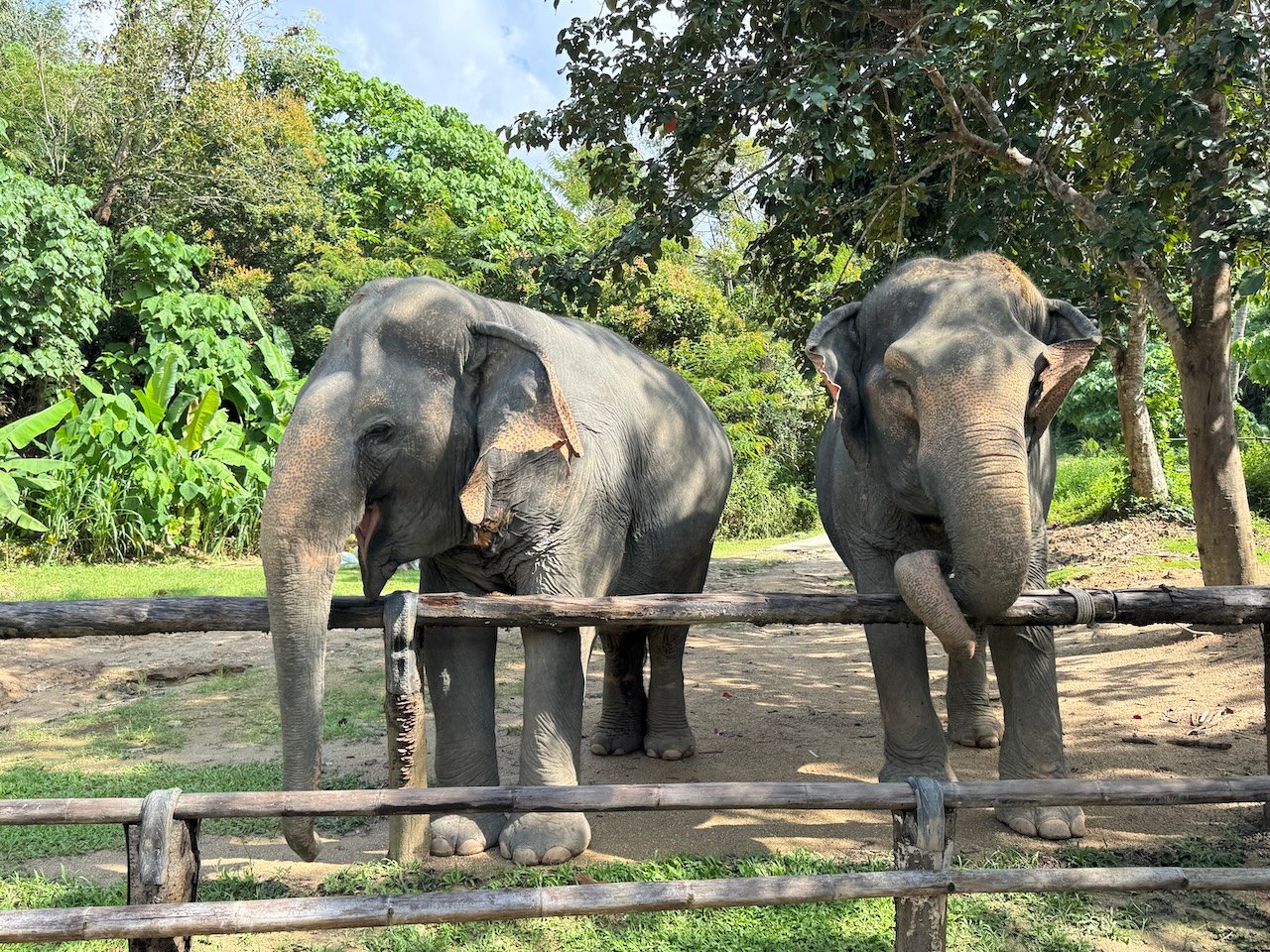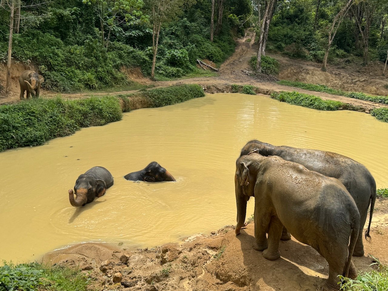This elephant reserve started with the arrival of two ladies in November 2023. Nam Paerng (Honey) aged 59 years and Gaw Boon (Good Luck) aged 54 years. They’ve since been joined by six other female elephants, who are all adjusting to a slower pace of life in their beautiful retirement home. These elephants have spent decades in the logging industry and riding camps for tourists.