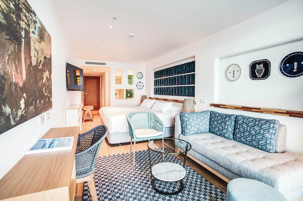 Double Superior Sea View: Combined sleeping & living area with twin beds. Bathroom with rain shower. Size 32-35m². Terrace with pool & sea views 8m². Maximum occupancy 2 adults. Situated in blocks 1-3.