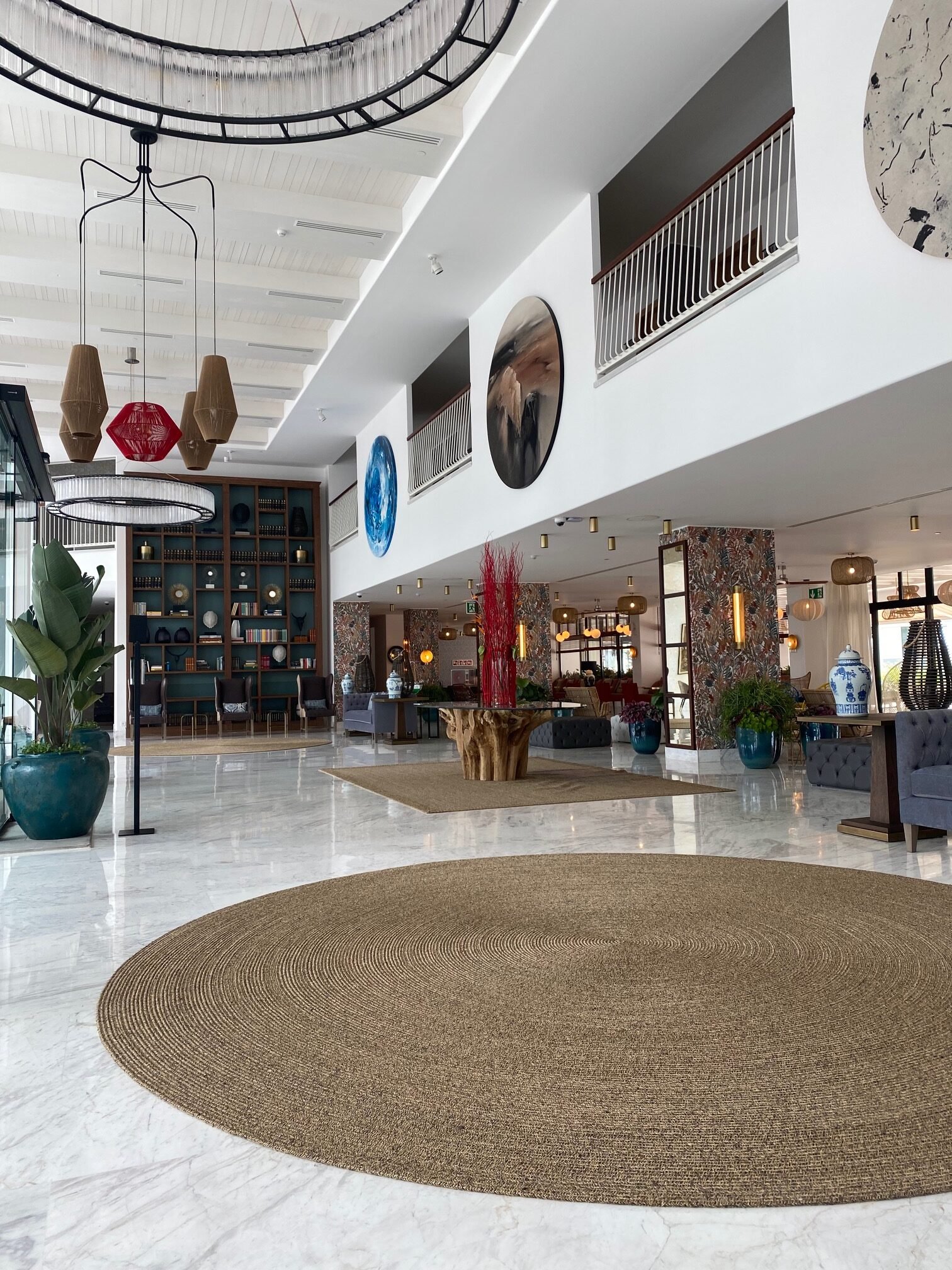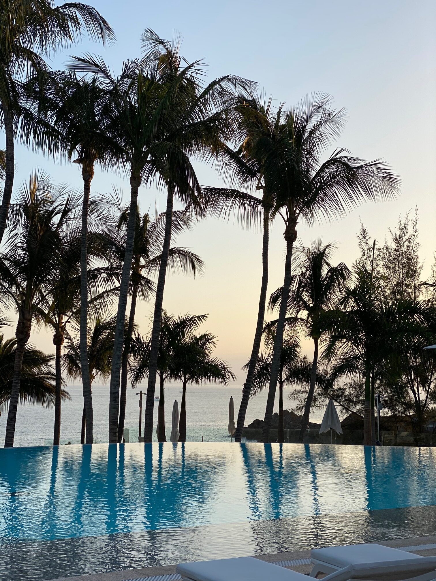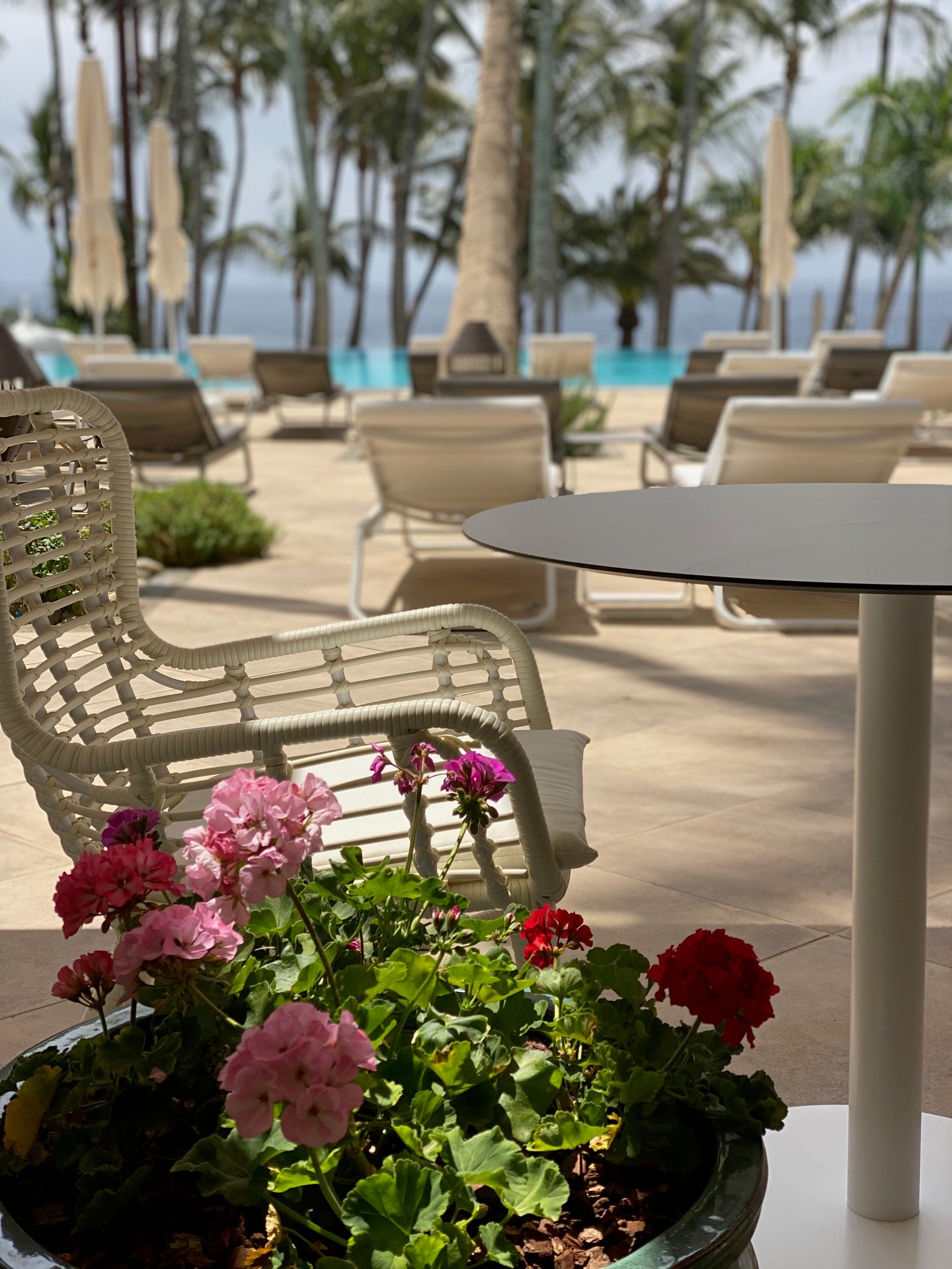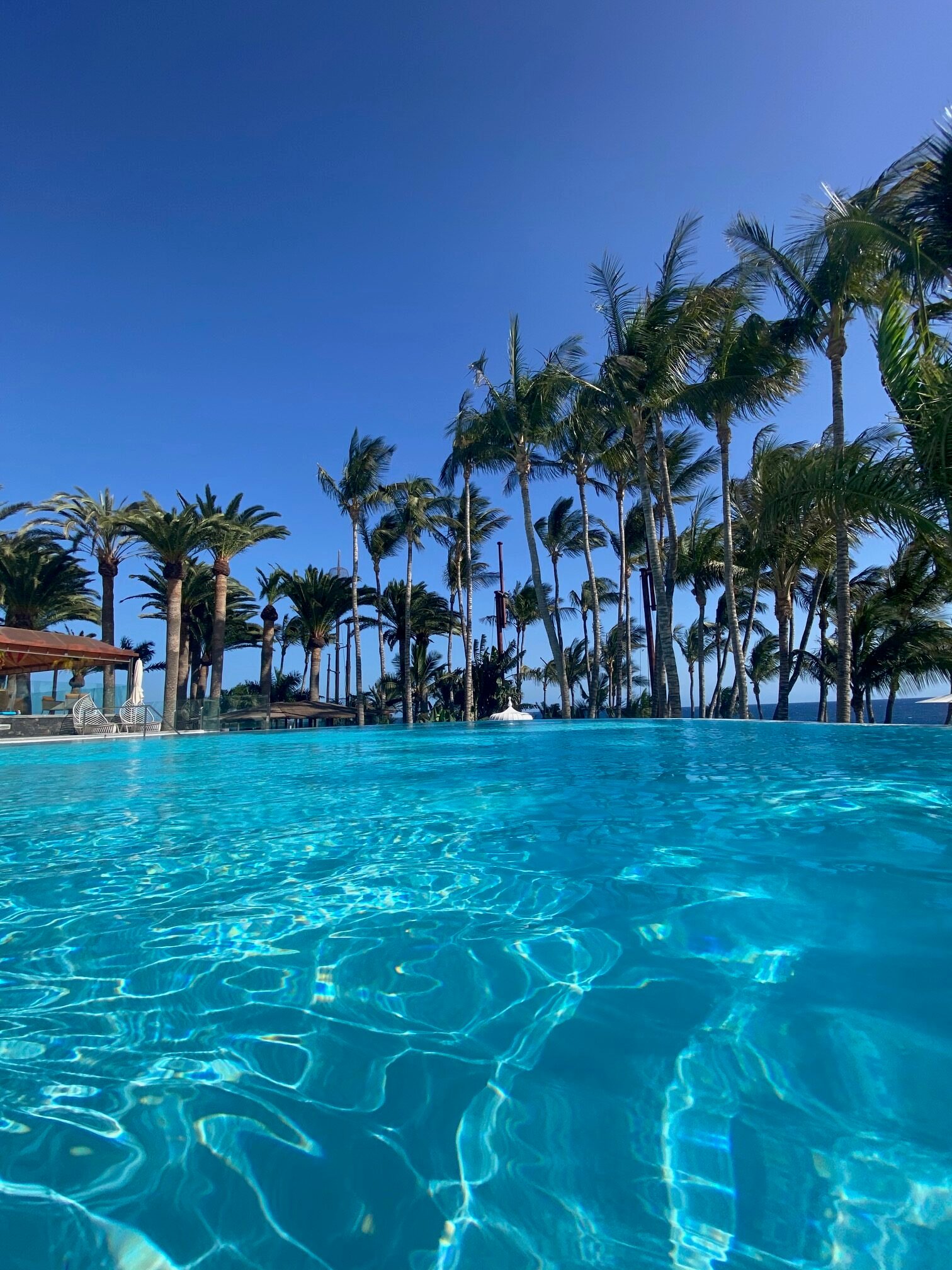 At the time of our visit there was a lot of towels reserving sun beds from first thing. We headed down after breakfast and managed to find 2 single ones left in the main pool area which we moved together. There are plenty of hidden spots within the mature gardens with a variety of seating, so do take a good walk around to find your preferred area. Guests have gate access to both beaches of Playa Grande and Playa Fariones (Cala on the map), so it’s easy to swim in the sea. The two jacuzzis are situated together, below the infinity pool. Watching the sunrise from the jacuzzi before breakfast was a lovely start to the day. The main infinity pool has roman steps with a hand rail for easy access. Plus a stone shelf where you can just sit in shallow water or drop into the main pool. The pool shape is good if you like to have a proper swim, or like most, head over to the infinity side to gaze out to sea.