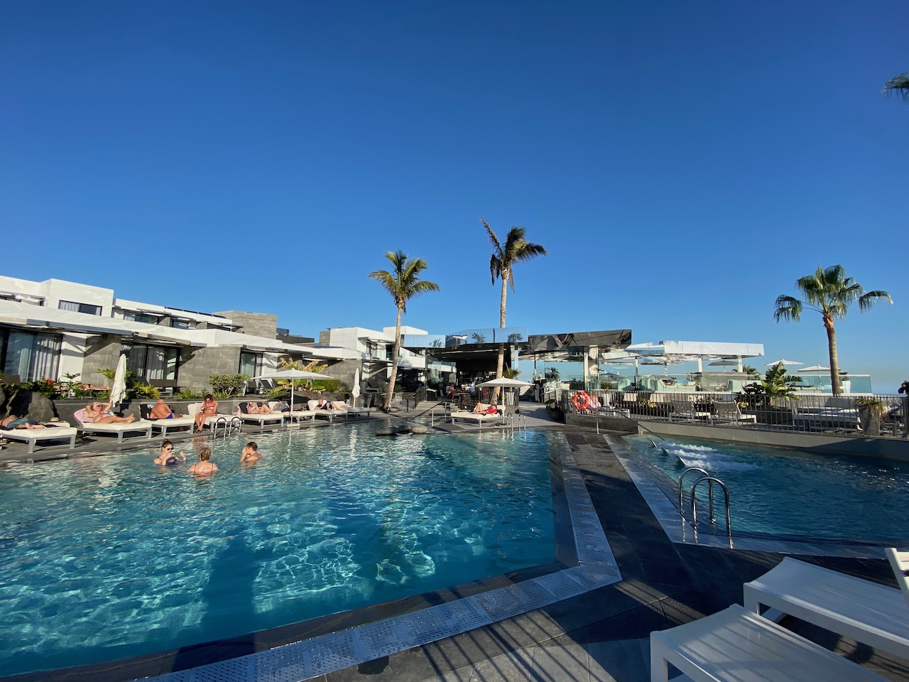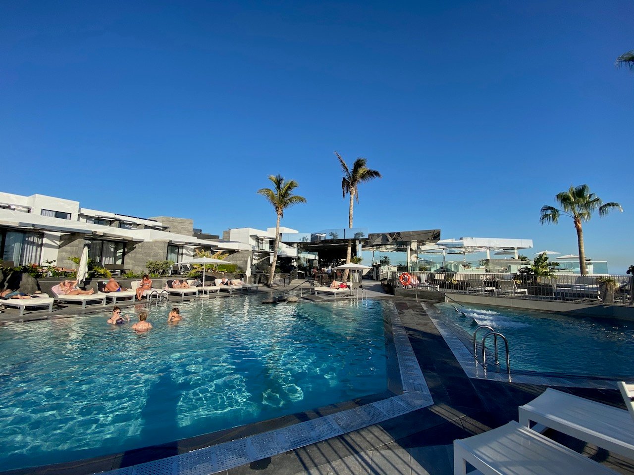 Our latest stay was in January 2020, we booked a classic suite and was allocated 705. Situated just below the pool area, our room was conveniently located and had a wonderful view to Fuerteventura & Los Ajaches. We benefitted from sunshine on our terrace for most of the day, this was furnished with two chairs, a coffee table and two sun loungers.