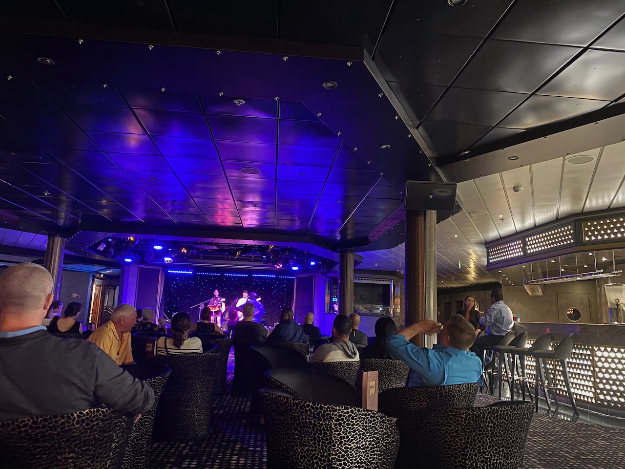 First night dined buffet & Stardust show 9pm meet key crew and spotlight on performances to come. No photos or video allowed. The introductions to both the entertainment crew on pool deck and the senior management team in the theatre were fun, each with their personal theme song and dance routine.