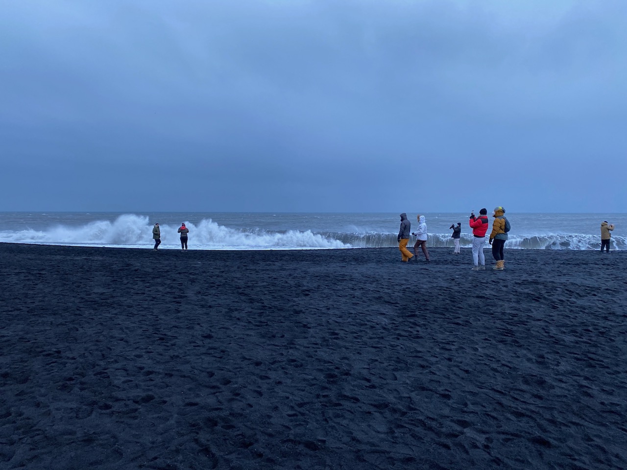 The last place on our South Coast to do list before we turned back to Reykjavik was Reynisfjara beach. This is an amazing black sand beach with a fabulous rock formation known as Reynisdrangar. On arrival we could hardly open the car doors against the wind, we had to move parking places, so we were nose into the wind. There was a lovely café at the side of the footpath down to the beach. There were several warnings regarding “sneaker waves”. Apparently this beach can be very dangerous and has swept people out to sea when larger than average swells have caused waves to break much higher up the beach than previous ones. The basalt rock formation is fascinating and provided a great backdrop for selfies. National Geographic voted this beach as one of the top ten non-tropical beaches to visit in the world in 1991. I would have loved to have stayed longer on the beach however the wind was taking our breath away, it was all we could do to hold the camera up to take a quick picture or two before heading back to the warmth of the café and a Swiss mocha hot drink (€10.06).