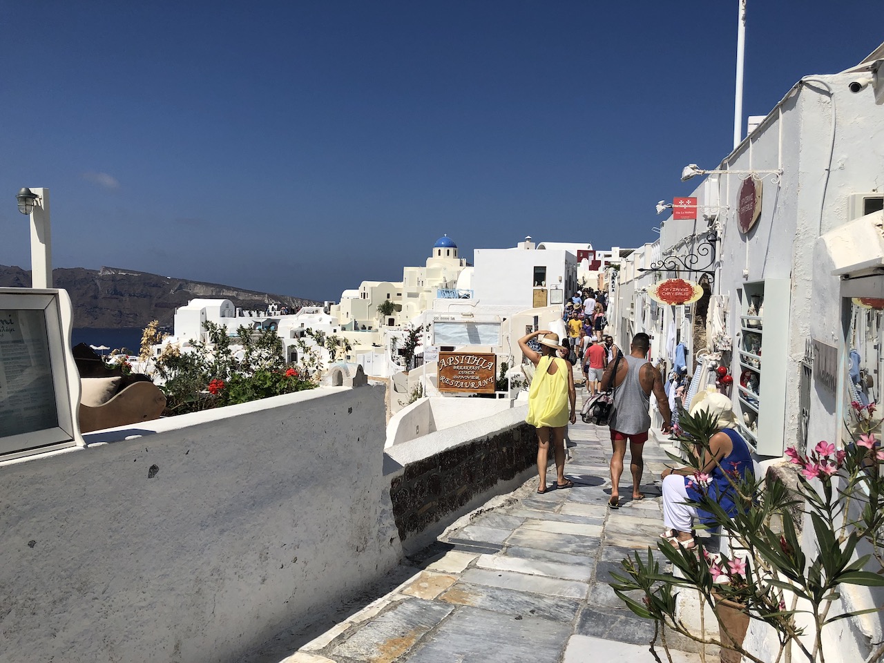 Santorini is not the easiest place for families. If you want to stay on the caldera, Oia has the least steps making it more pram friendly and Fira has lots of things to do to keep kids entertained. The best family friendly beach location is Kamari.