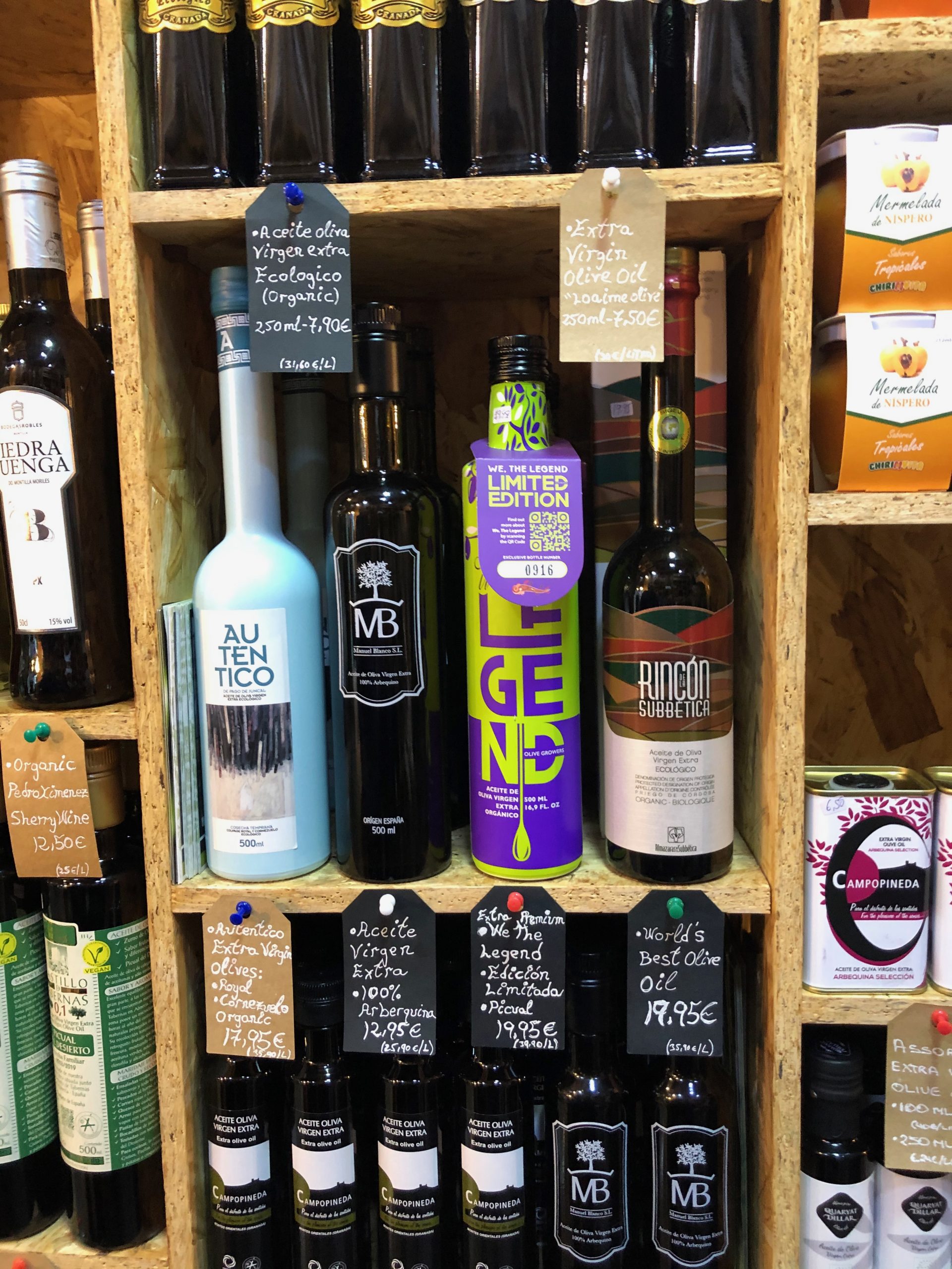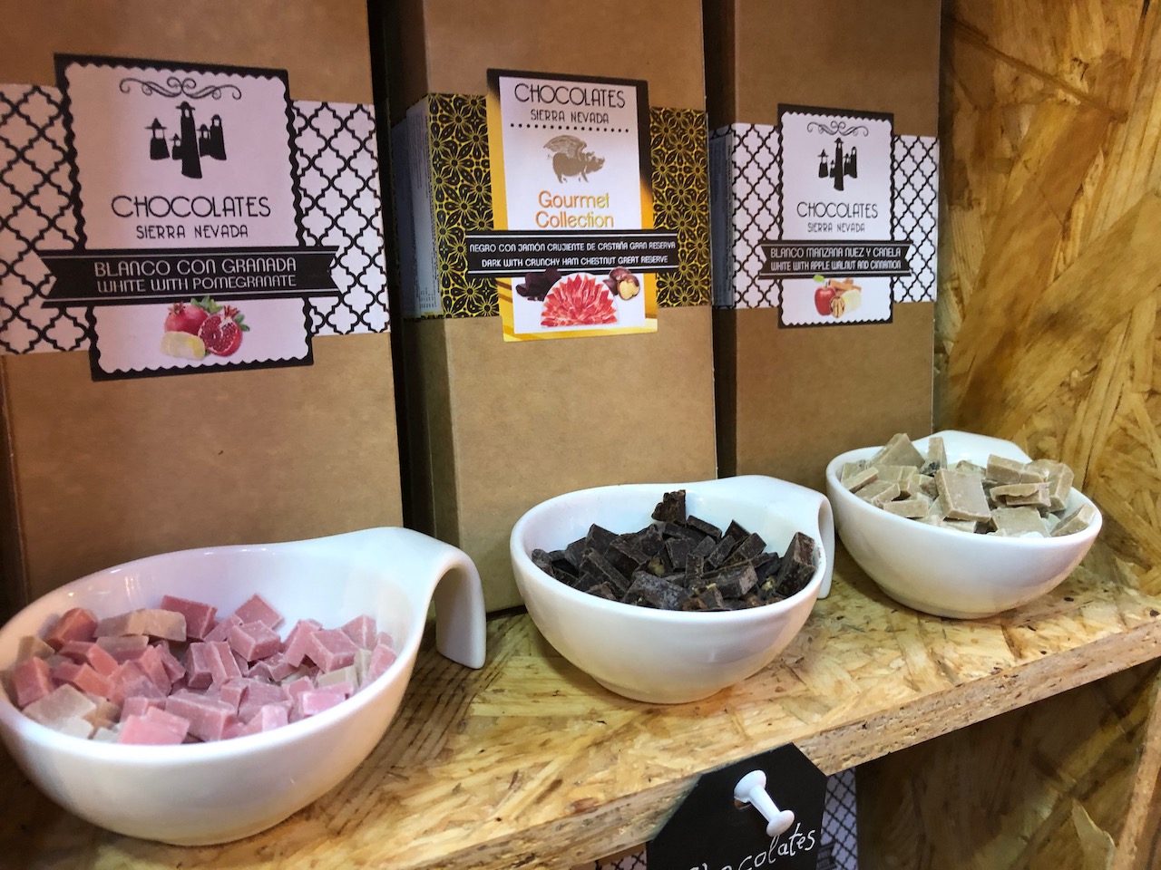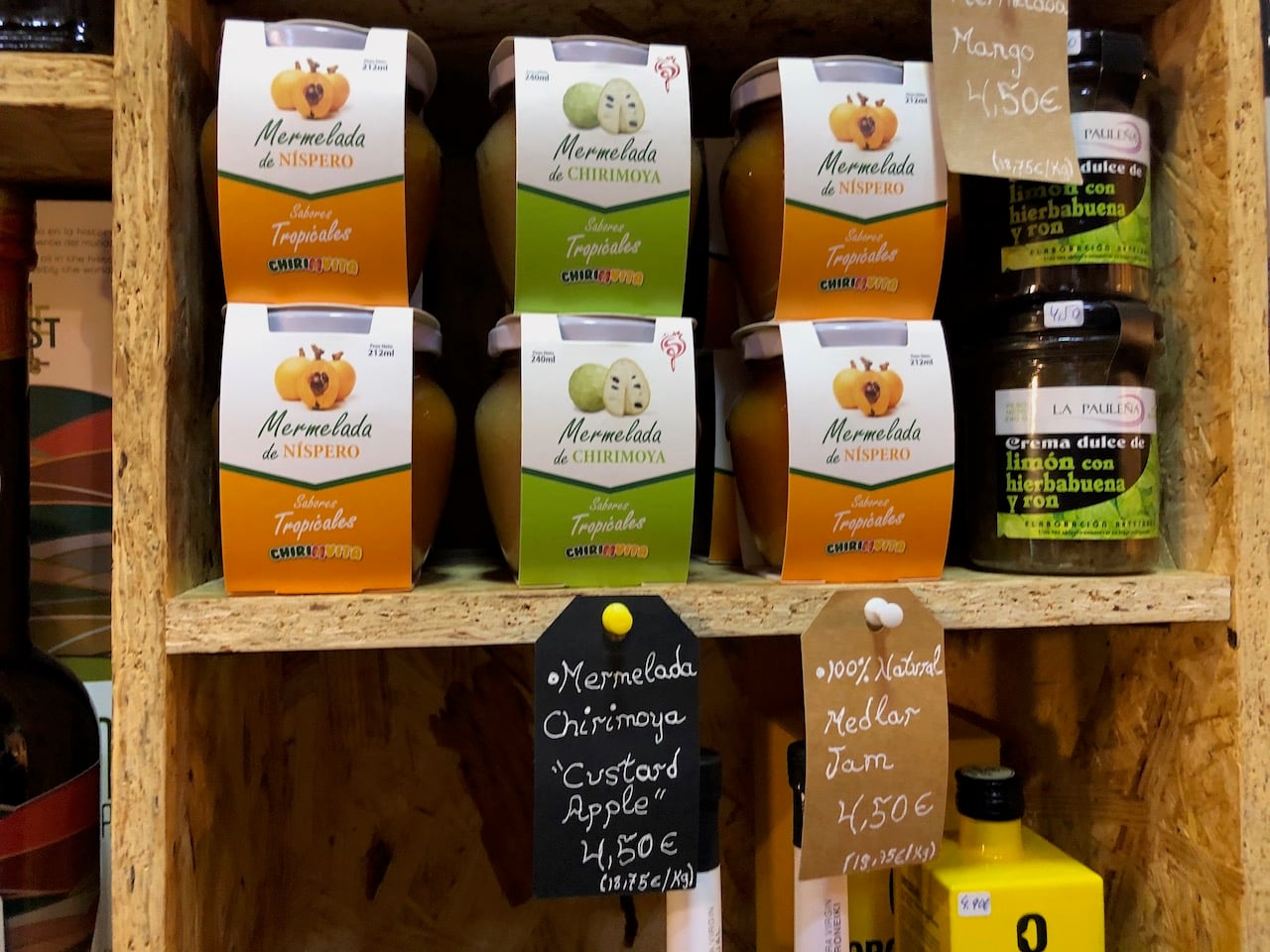 The extra virgin olive oil tasting was interesting, first we tried the oil with bread, to determine our favourite. Next we tasted the selection of cheese, finally we combined our favourite cheese with the best olive oil and wow! We bought a bottle of Rincón de la Subbética produced from an early harvest of Hojiblanca olives and currently acclaimed to be the best in the world. This olive oil has an intense, green citrus aroma, initially sweet with a spicy finish on the palate. We’d never tasted Chirimoya before, a jar of this jam also made it into our shopping bag, along with a bar of chili chocolate from Sierra Nevada.