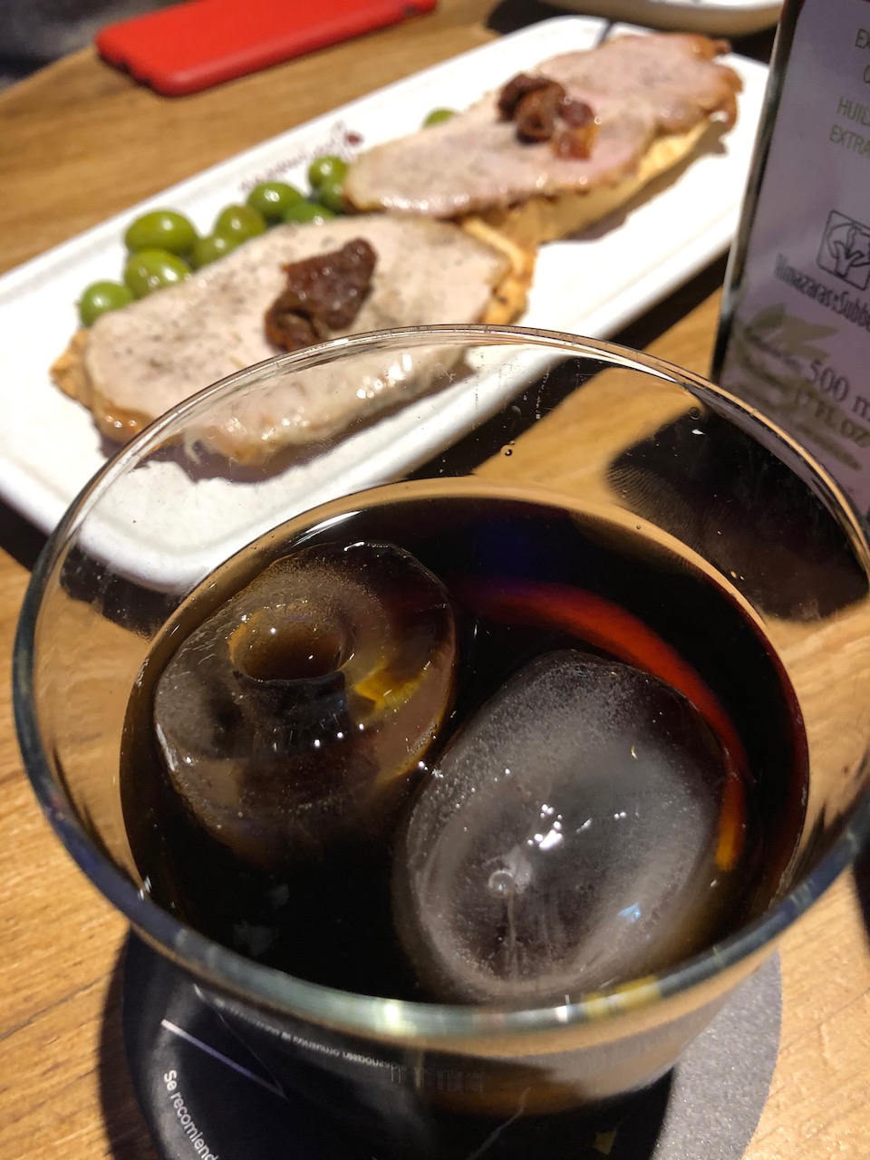 We were stunned, normally not fans of vermut we adored this drink! Served over ice with a slice of orange, the vermouth was packed full of spices. For me it was Christmas in a glass! Paired with a tapa of lomo. The thinly sliced pork loin was served warm on bread, with sun dried tomato and a drizzle of extra virgin olive oil.
