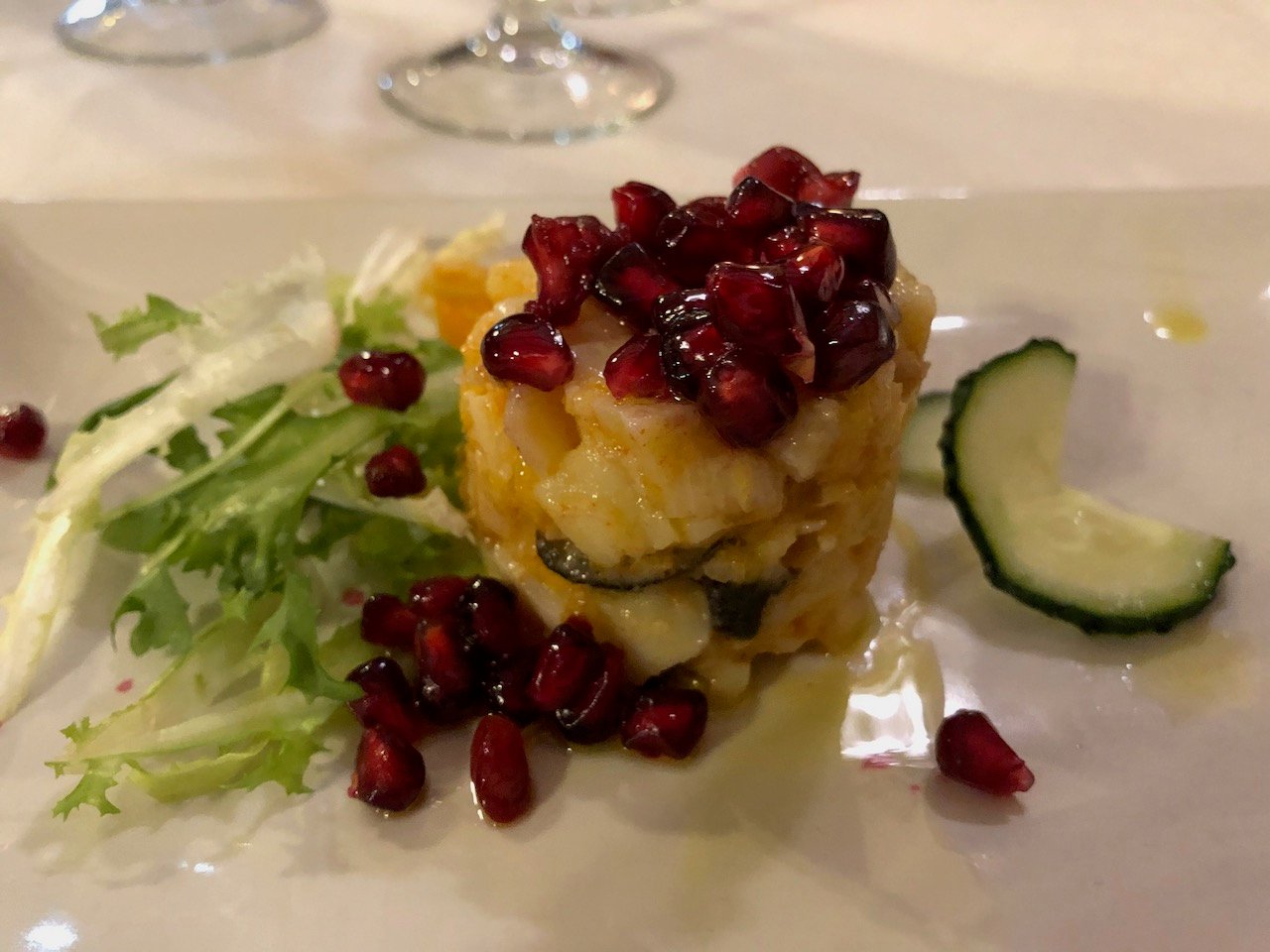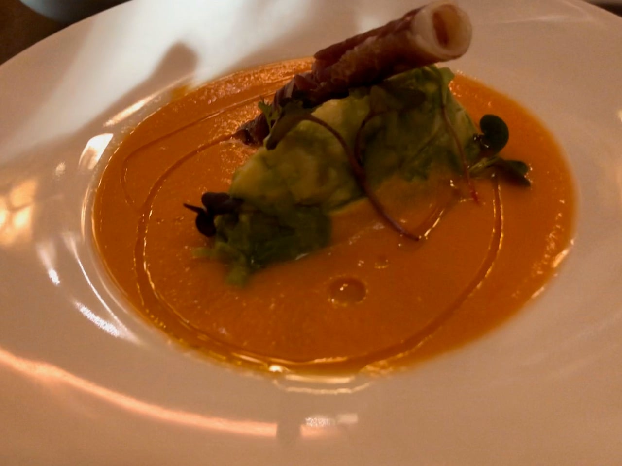 Our first restaurant stop on the Taste of Granada Tour was going to be hard to beat! Alameda has been recommended by the Michelin guide for 4 consecutive years. The chef at Alameda takes the freshest seasonal ingredients produced locally to create traditional regional dishes, with a contemporary twist. Our first dish of Salmorejo was paired with a chilled glass of Albariño white wine from Pazo Señorans.
