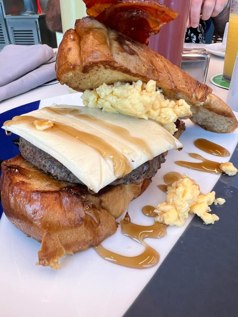 The Galley is their quick dining option, there are lots of different food stations offering a wide choice of dishes. Even here in the food hall type of environment you have waited tables, simply take a seat and your server will be with you soon. Browse the menu, place your order and it’s brought to you. There are help yourself soft drinks and water dispensers with ice machines. At breakfast fresh orange juice and tea / coffee was also offered. Check out the French toast burger for breakfast!