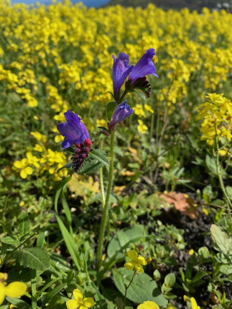 Gradually the blue of the Echium lancerottense began to filter through. This plant is endemic to Lanzarote and also known as “lengua vaca” (translates to cow tongue) or “viborina de Lanzarote”. Whilst the overall appearance from a distance is a blue field, the flower is a mixture of blue and pink. It has fine prickles on the stems and is best avoided with direct skin contact.