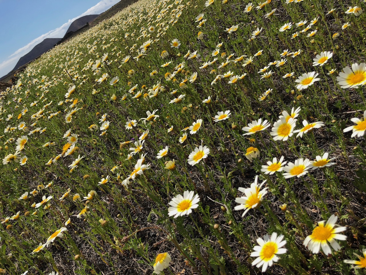 In early February fields of white started appearing in Máguez when the Margaritas bloomed (Chrysanthemum coronarium). These large daisy flowers are also known locally as Pajitos. Guatiza is a great place to head for if you want to see fields full of Margaritas.