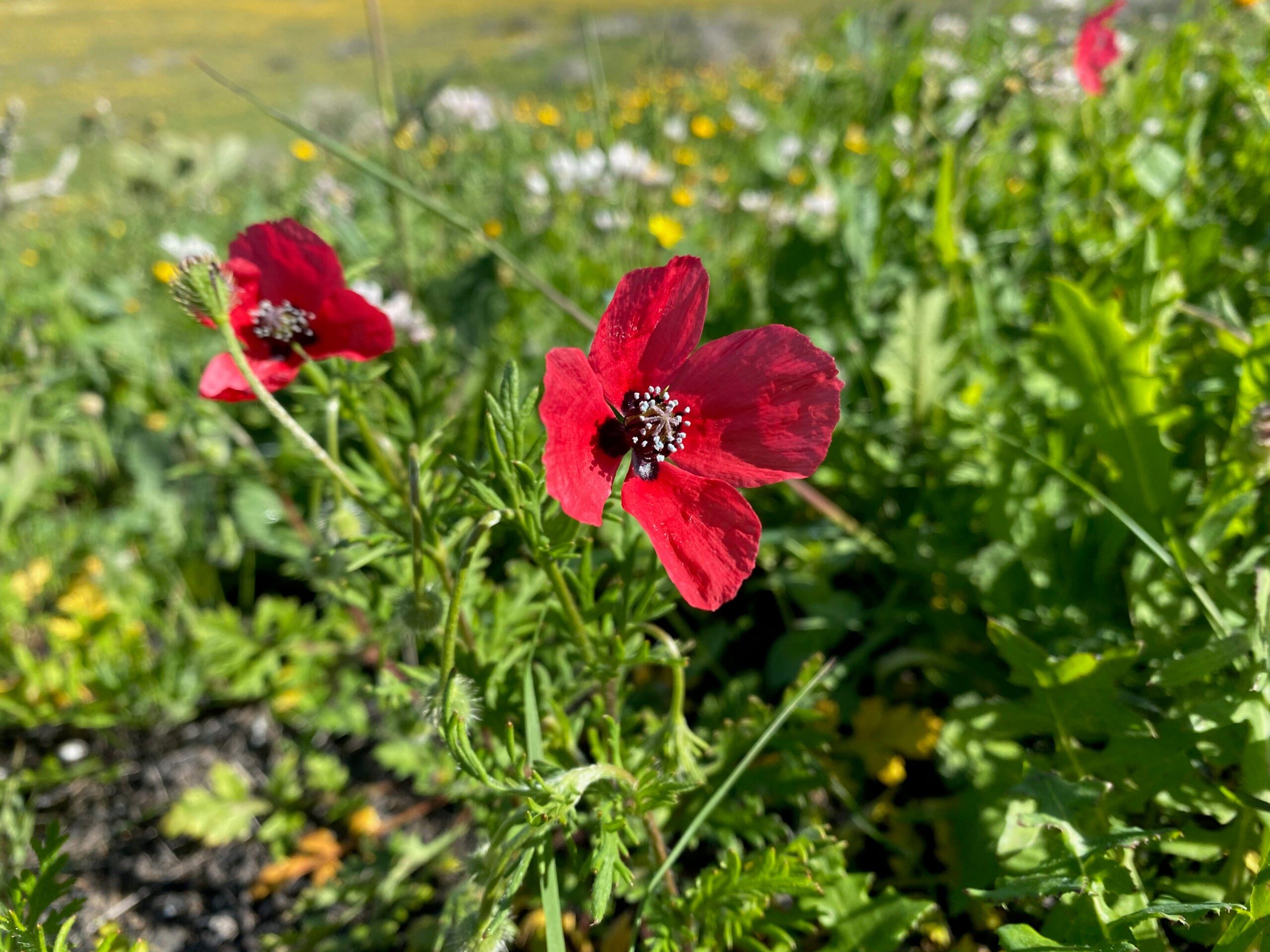 After the Margaritas, bright red poppies Amapola triste (sad) or peluda (hairy) are now adding to the mix of meadow flowers. You can also find pink poppies know locally as Amapola borracha (drunk) or loca (mad)!